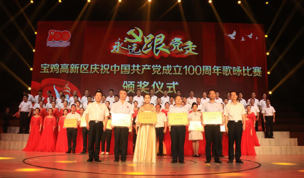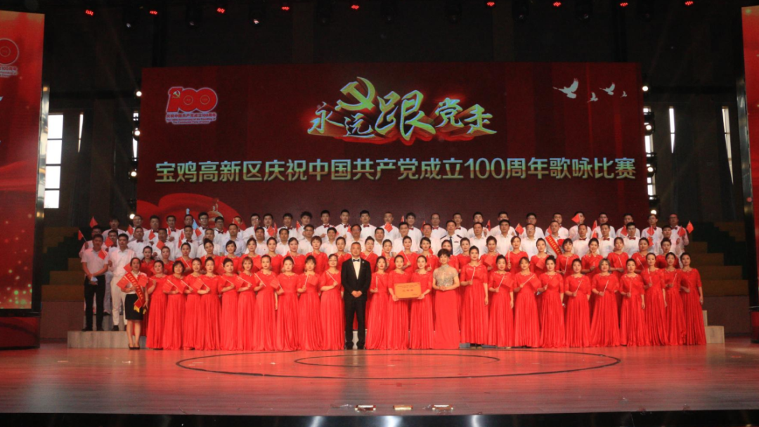 漫漫征途憶崢嶸歲月,聲聲嘹亮頌百年初心。6月29日,高新區(qū)在寶雞職業(yè)技術學院舉行慶祝建黨100周年歌詠比賽。寶雞高新投資控股有限公司黨支部、寶雞高新創(chuàng)業(yè)服務中心有限公司黨支部組成的合唱團演繹了《四渡赤水出奇兵》《愛我中華》兩首紅歌并榮獲本次比賽三等獎。